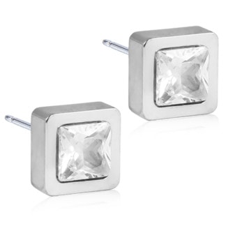 Blomdahl Natural Titanium Earrings – Grande Square Cubic Zirconia