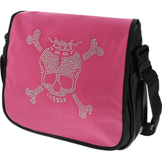 Beauty Carry Bag with Skeleton Motif, Pink & Black, Empty