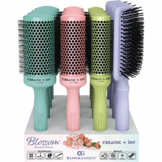 Olivia Garden Ceramic & Ion Speed XL Long Barrel Blossom Brush Display: 12 Brushes & Stand