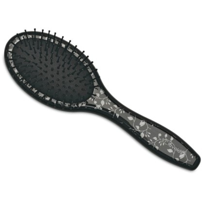 Soft cushion for relaxed styling motion. Elegant handle finish with soft cushion and bristle design for comfortable brushing. Elegant finish and motif.