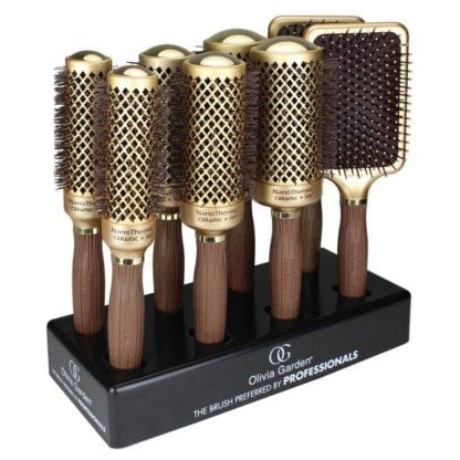 Olivia Garden NanoThermic Ceramic & Ion Brush with Paddle Display: 8 Brushes & Stand