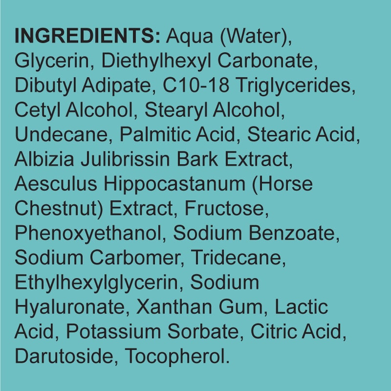 Key ingredients: glycerin, undecane, Persian silk tree bark extract, horse chestnut extract.