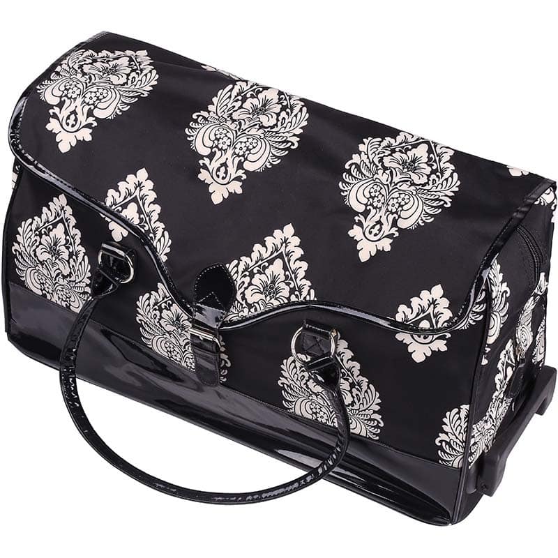 Beauty Carry Bag DaMask Floral Fashion Tote on Wheels, Empty