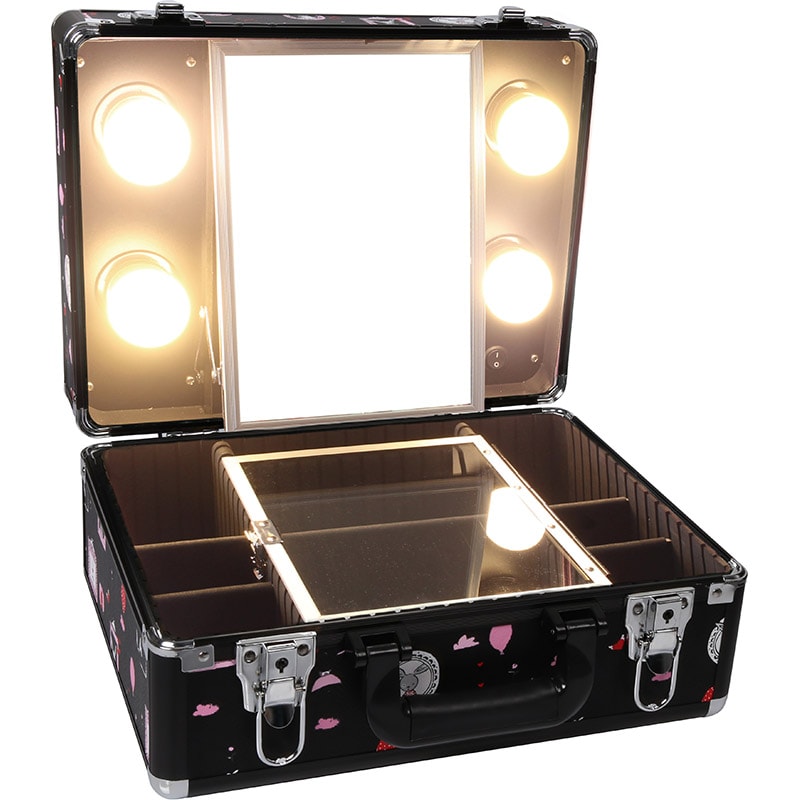 Cute make-up case with four light fixtures and built-in, adjustable mirror. An ideal addition to any make-up or styling enthusiast to keep products and tools in reach and for ample lighting when applying make-up.