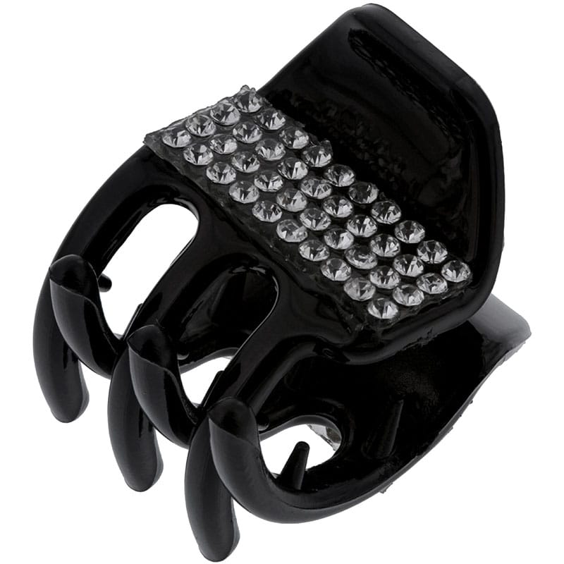 Mini claw clip with large teeth size adorned with light strass. Eye-striking design that catches and bounces the light in different directions. Ideal for adding flair and style to any hairstyle. Great for enhancing styles and adding sophistication for special occasions. Ideal for sharing.
