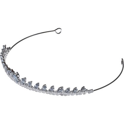 Classic metal Alice band adorned with zircon stones for a more luxurious and special wearing experience. Zircon stones are designed to meet in the middle with a beautiful centrepiece. Each stone is 2.2cm long and the band is lined with them across almost the entire wire. Light reflects off stones for eye-catching results. Includes two pins for better style management.