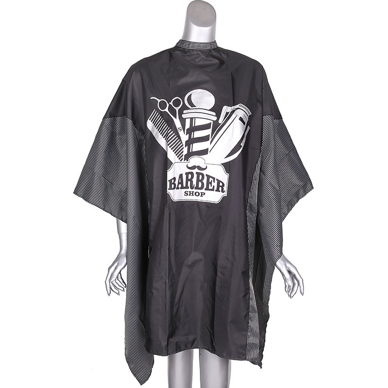 Barber Cape Black with Pinstripes Side Panel & Barbershop Centre Design, Studs
