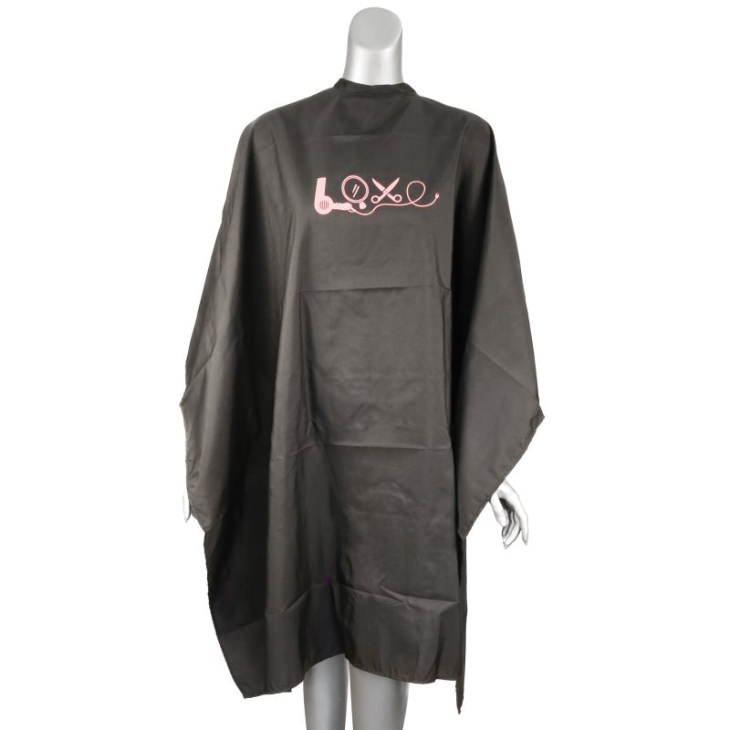 Salon Cape Black & Pink Love with Salon Tools, Waterproof Polyester, Studs