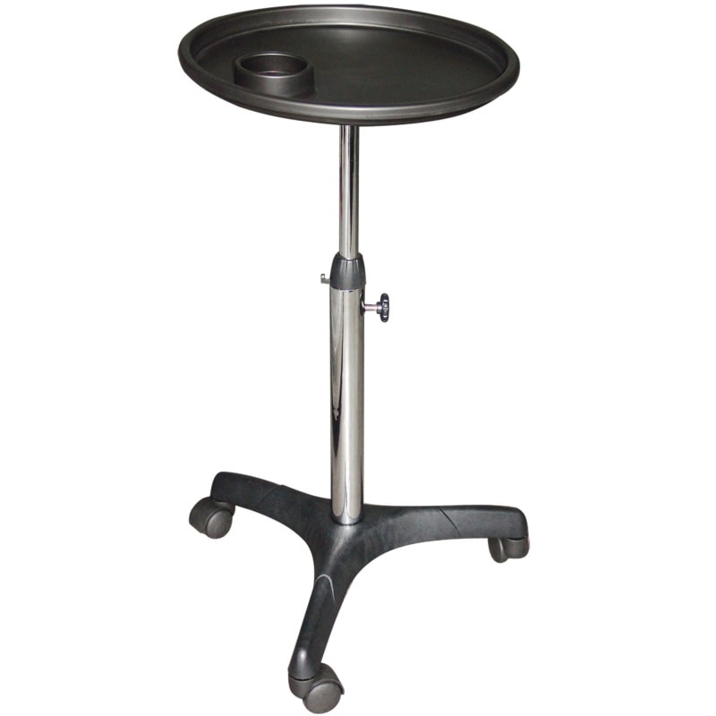 Simple colourist tray on wheels, with height adjustability. Features a hole to store a dryer, or certain tint bowls if needed. A minimalist design, great for tint and other colour work. Fitted with wheels to be used across salon area. Its compact design is ideal for small work spaces.