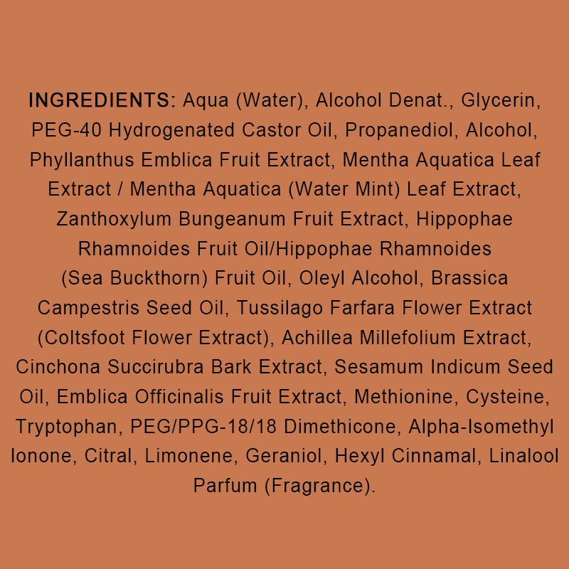 Seaberry Oil is one of the most powerful medicinal plants in the world.Seaberry Oil contains 190 bioactive substances which offer an authentic cocktail consisting of Omega 3, 6 and 9, Carotenoids, Vitamins C and E. It is also one of the main vegetable sources of fatty acid Omega 7, which provides skin regeneration and repairing properties. Every Contempora treatment product contains Seaberry Oil because it is such an extraordinarily powerful hair superfood, packed with pure and unique nutrients, vitamins and antioxidants. |