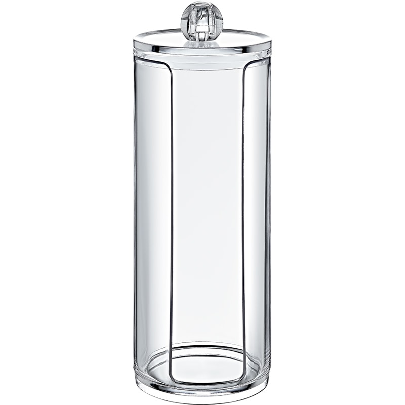 Classic organiser to house and dispense cotton discs and pads. Cylinder design 17cm tall to stack discs. A trendy, clear design makes it easy to see contents. Keep your cotton discs and pads in an organized container for easy access during make-up and spa sessions.