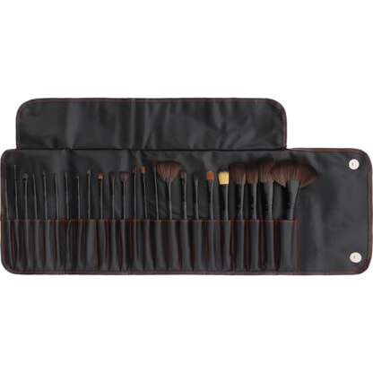 The comprehensive designer make-up brush collection with 24 unique brushes. Each brush securely fits into its slot in the sleeve for easy protection during storage or travel. Includes every brush you could want for facial make-up application. Each brush’s bristles are made of 100% synthetic fibers. These fibers are designed to apply cosmetics as flawlessly and naturally as possible, picking up the maximum amount of product for quick sessions. Synthetic bristles are also supremely gentle and can be used on all skin types.