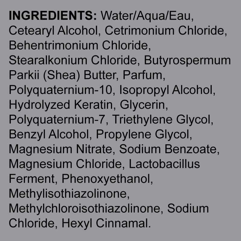 Enriched with keratin and shea butter for strong, vibrant hair, regardless of the type. Ingredients soften, moisturize and repair hair, while providing protection against frizz.