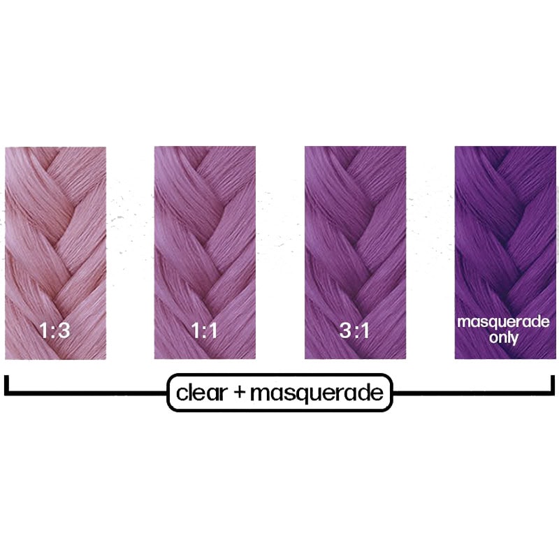 Clear turns down the volume of the other intensely bright Danger Jones colours. Use with any other colour to lighten its tonality and create a real pastel effect. Danger Jones colours are unbelievably intense, which makes them easy to fully saturate every hair strand. Adding clear to the mixture dilutes its intensity for a less intense result. Vary the amount of Clear to create limitless tones.