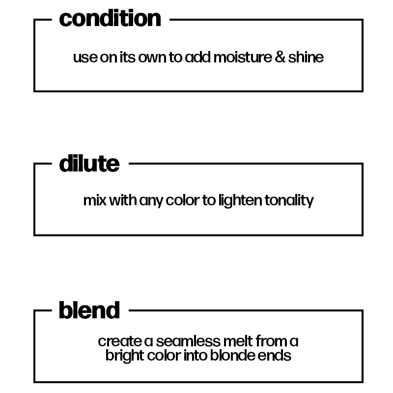 Clear can also be used on its own to add moisture and shine as it acts as a second conditioner to the colour. That will get any colour to really pop.