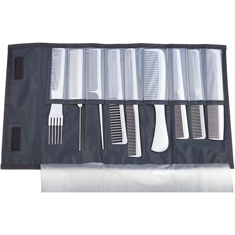 Distributes hair evenly across teeth to prevent clumping, snagging and breakage, works great on wet or dry hair. A variety of comb styles and sizes, fitting in a roll-up pouch. Can handle any styling requirement. Perfect for intricate styling on-the-go.