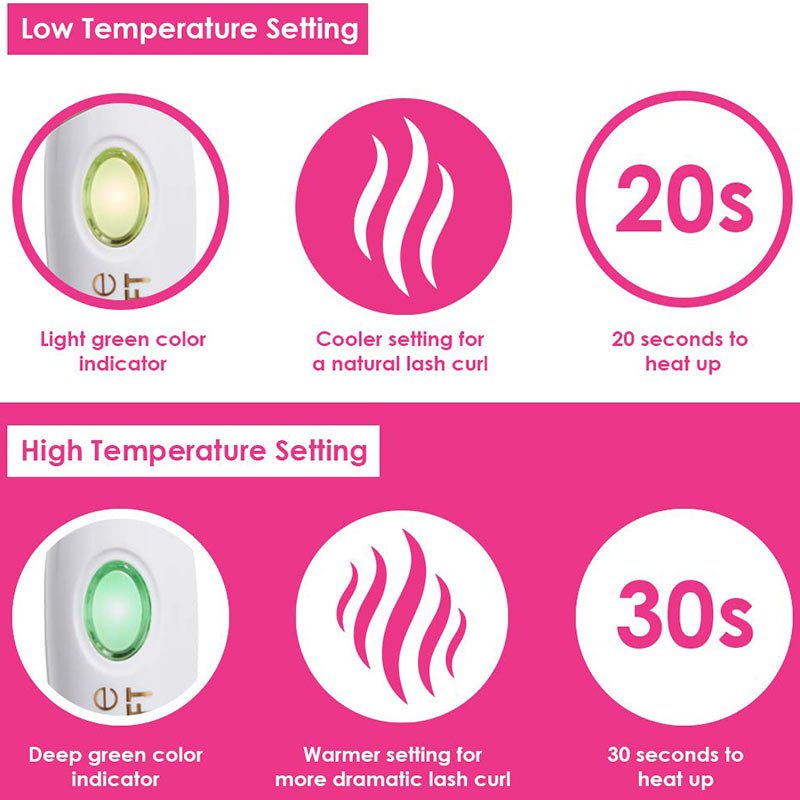 • Temperature sensitive wire allows for low and high temperature curl settings to best suit your lashes and needs