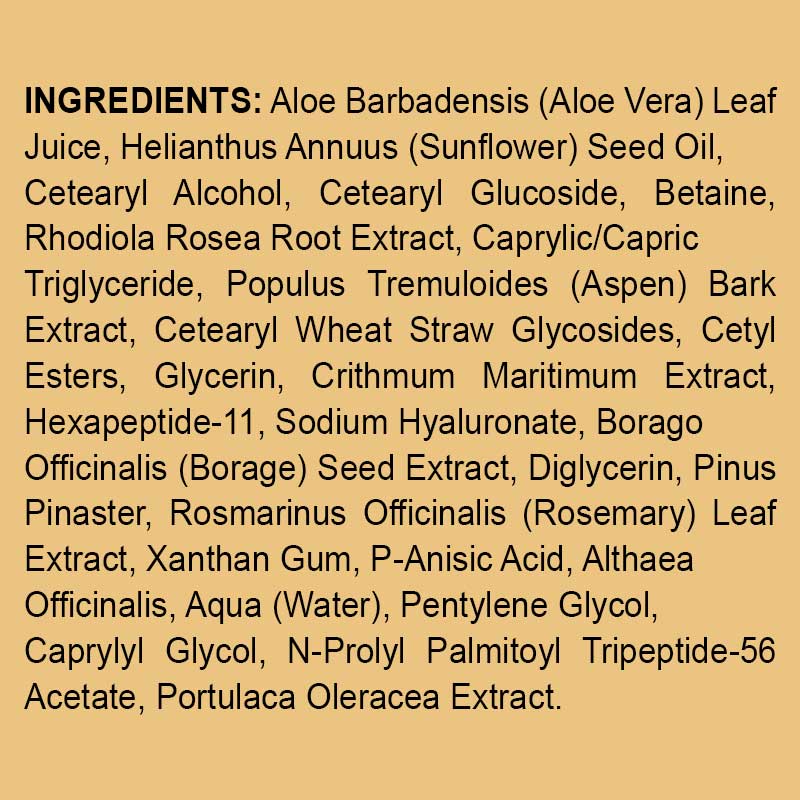 - Aloe Vera: Deeply moisturizes to visibly relieve swelling and puffiness