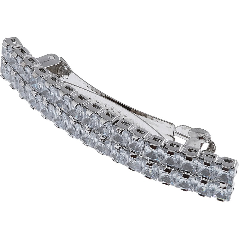 Add a special accessory to your style with this bridal clip. Easily slots onto your natural hair where the zircon stones across the comb face transform a look into one more luxurious and sophisticated. Light reflects off stones for eye-catching results. Clip opens by pressing two fingers on either side of mechanism, and securely closes for a safe hold.
