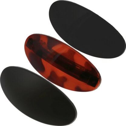 Oval hair barrette clip with large solid colour face, great for a centrepiece design on the hair. Clip opens by pressing two fingers on either side of mechanism, and securely closes for a safe hold.