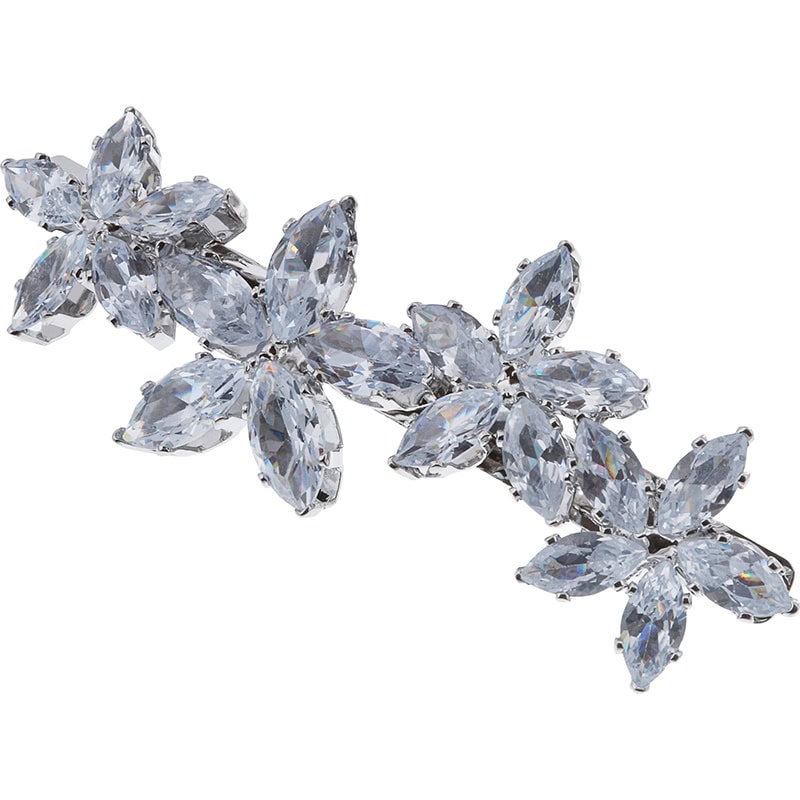 Add a special accessory to your style with this bridal clip. Easily slots onto your natural hair where the zircon stones across the comb face transform a look into one more luxurious and sophisticated. Light reflects off stones for eye-catching results. Clip opens by pressing two fingers on either side of mechanism, and securely closes for a safe hold.