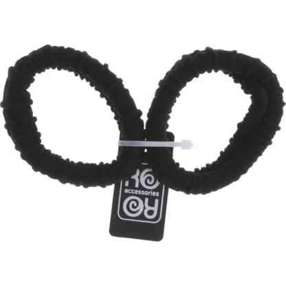 Ribbed hair elastics in solid black, perfect for holding hair in place. Ideal for creating ponytails. Plain black is ideal for concealing elastics in a style. Soft material and gentle elastic ensures a comfortable application, wear and removal. Textured material adds extra softness.