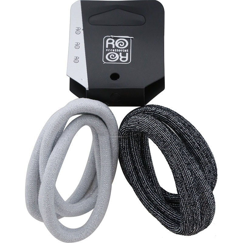 Classic hair elastics for holding hair in place. Ideal for creating ponytails. Subtle silver and slate colours for all situations. Soft material and gentle elastic ensures a comfortable application, wear and removal.