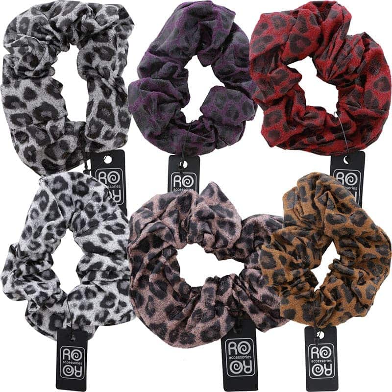 Leopard print hair scrunchie. Classic design for creating intricate styles. A true hair accessory staple for everyday looks or special events. Where around the hair or on the wrist – whatever the situation requires. Comfortable elastic ensures easy application, wear and removal.