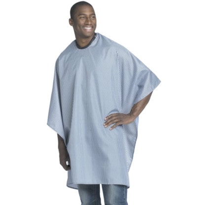 Barber cutting cape with studs. Large coverage, luxurious, flowing material during procedures.