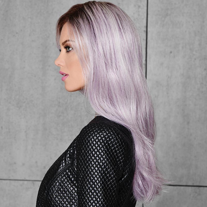 Show off your girly side in pretty pastel waves. The long lilac hair is tipped and topped with a darker root to make it bold but believable. Our open cap is constructed and made to feel as cool as you’ll look. To enhance your look add a braid, curl it or flat iron it super-straight. With a comfortable cap design you can wear it for a night out or even all day. No celebrity colourist or harsh chemicals required.