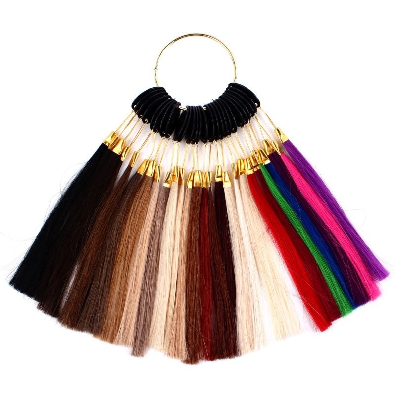 Convenient ring to store extensions. Great for comparing colours. Use to reference during services and to give customers an idea of the end result. Includes a number of colours, ranging from natural to vibrant shades and colours.