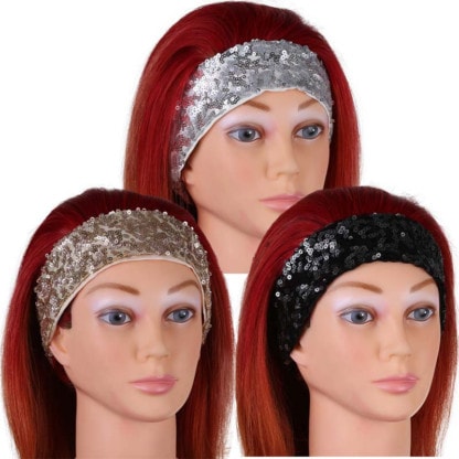 Headband with full forehead coverage to keep hair in place. Very soft satin material makes it comfortable for all day wear. Features sequins that reflect light at different angles for added flair and sparkle. Adds style to any look as well as functionality for keeping hair in place for daily activities. Sparking effect makes it ideal for special occasions.