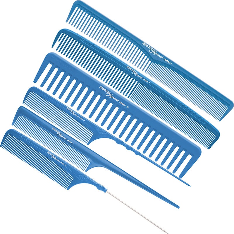 Carbon combs with colourful blue exterior. Produced in Germany to exacting standards.