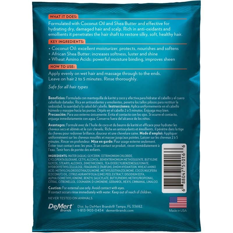 An effective treatment sachet for hydrating dry, damaged hair and scalp. Rich in antioxidants and emollients that penetrate the hair shaft to restore silky, soft, healthy hair. Leave on hair for 2-5 minutes for best results. Formulated with Coconut Oil, African Shea Butter and Wheat Amino Acids for maximum hydration therapy.