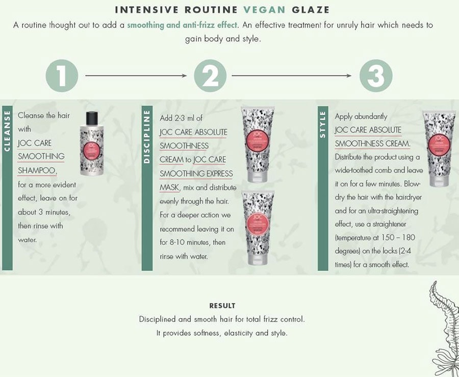 STEP 3Apply JOC Care Satin Sleek Absolute Smoothness Cream. Distribute the product using a wide-toothed comb and leave on for a few minutes. Proceed with styling and use a straightener for a smooth effect.