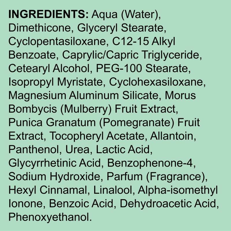Benefits from extracts of Mulberry and Pomegranate to soften, soothe and refresh the skin on first contact. Use after an appropriate cleanser to hydrate the skin. This lightweight formula helps protect the skin and leaves it feeling nourished and hydrated.