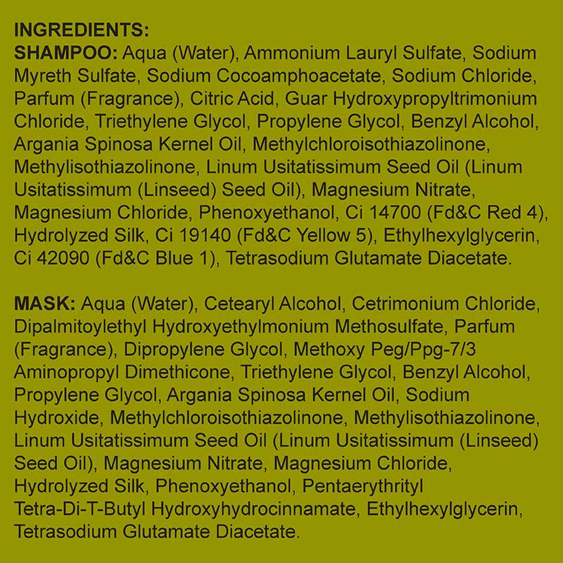 Travel set of the Argan Oil range, featuring mini sizes of the shampoo and mask. This is an intensely nourishing regimen that introduces extreme brilliance and softness to the hair.