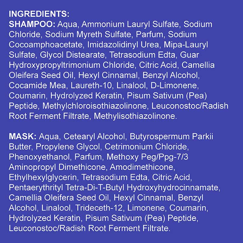 | Concerns | Damaged Hair from Chemicals, Heat, Exposures & Styling |