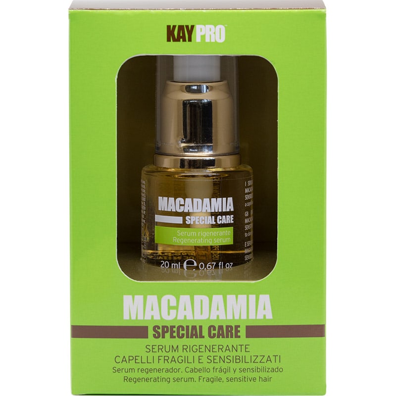 Regenerating serum with macadamia oil to treat fragile, sensitive hair. This kind of hair type needs a delicate balance of natural ingredients potent enough to provide relief from sensitivity, but not too heavy to weigh down the hair and make it look worse.