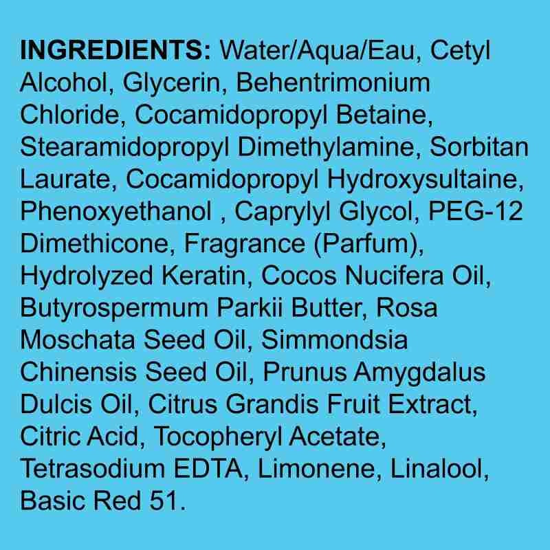 • Shea butter: Contains Vitamin E and intense moisturizing properties to leave hair incredibly soft.