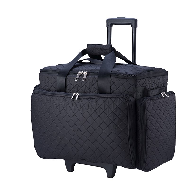 Beauty Make-Up Bag Fleur de lis Design on Wheels, Empty