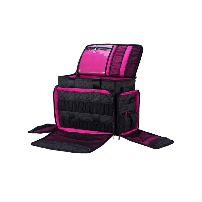 Beauty Carry Bag with Skeleton Motif, Pink & Black, Empty