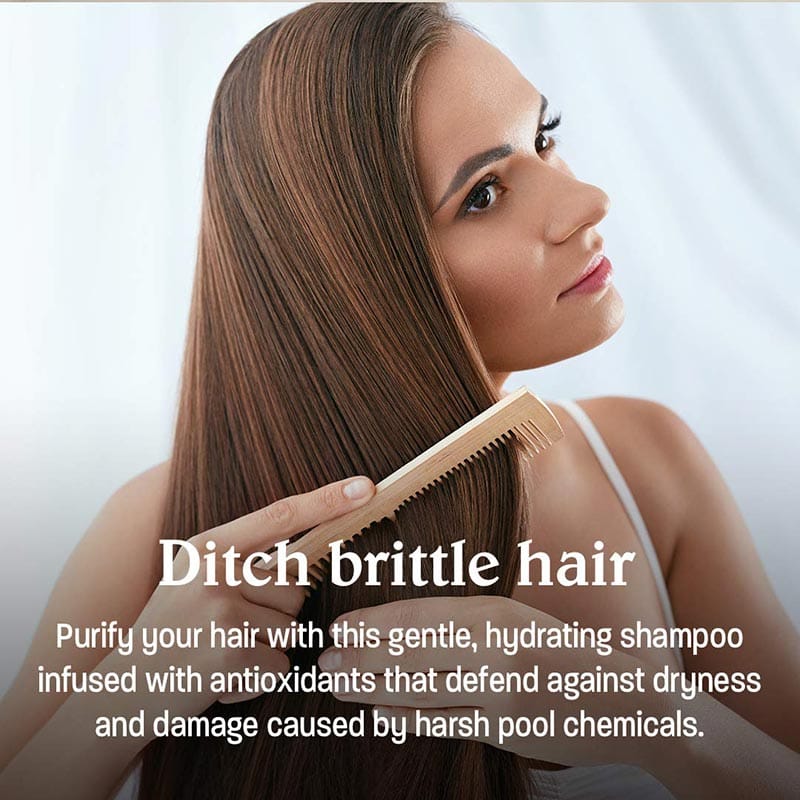 Naturally eliminate elements (chlorine, bromine, copper, calcium, lime or salts) that can make swimmers’ hair look and feel damaged.