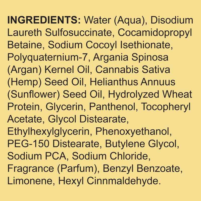 Products contain both Hemp Seed Oil and Argan OilWHY?Hemp Seed Oil has been named “Nature’s most perfectly balanced oil”, as it contains the perfectly balanced 3:1 ratio of Omega 6 (linolei/LA) to Omega 3 (alpha-linolenic/LNA) essential fatty acids. Hair, skin and nails are all formed from the same line of dermal cells. People who use hemp seed oil typically report thicker and shinier hair, softer skin and stronger nails. Since hemp seed oil is nearly identical to our own lipids, it is capable of penetrating our cells and lubricating the surfaces between them. Often called ‘liquid gold’, Argan Oil is a product extracted from the kernels of the argan tree, which is native to Morocco. It is extremely rich fatty acids and vitamin E. Its properties make it particularly beneficial for the hair and skin. Above all, the combination of Hemp and Argan Oils provides added nourishment to your hair and body. |