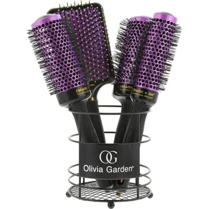 Olivia Garden Ceramic & Ion Thermal Boho Chic Brush Display: 4 Brushes & Basket