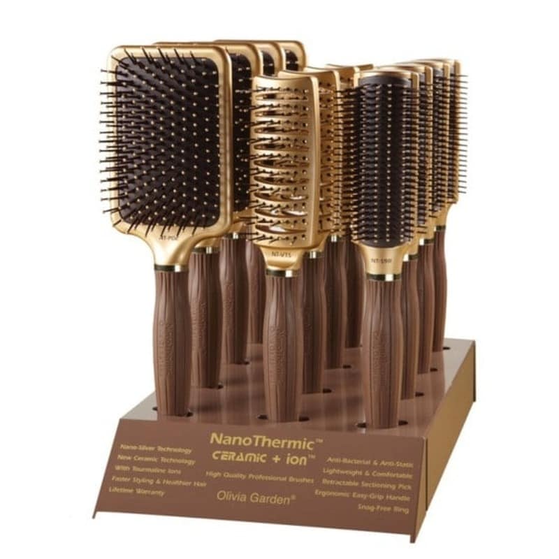 Olivia Garden NanoThermic Ceramic & Ion Vent, Styler & Paddle Brush Display: 12 Brushes & Stand