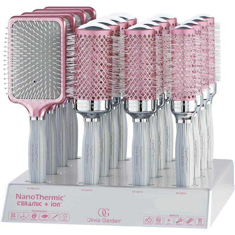 Olivia Garden NanoThermic Ceramic & Ion Breast Cancer Awareness Pink & Grey Brush Display: 16 Brushes & Stand