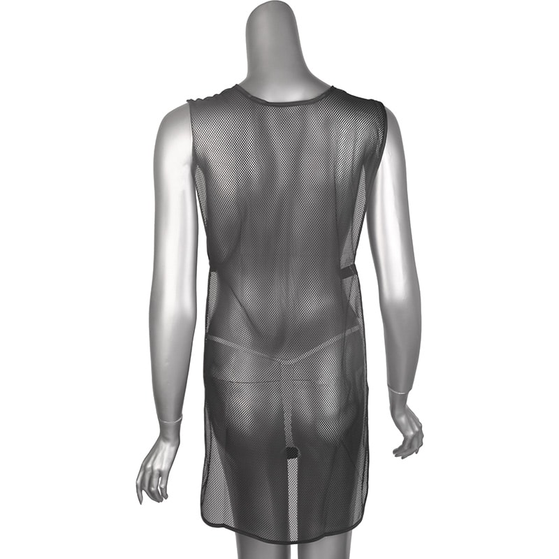 Flowing polyester pinafore for enhanced protection during services and treatments. Soft polyester is lightweight and comfortable to wear for long periods. Designed to ensure maximum maneuverability for arms.