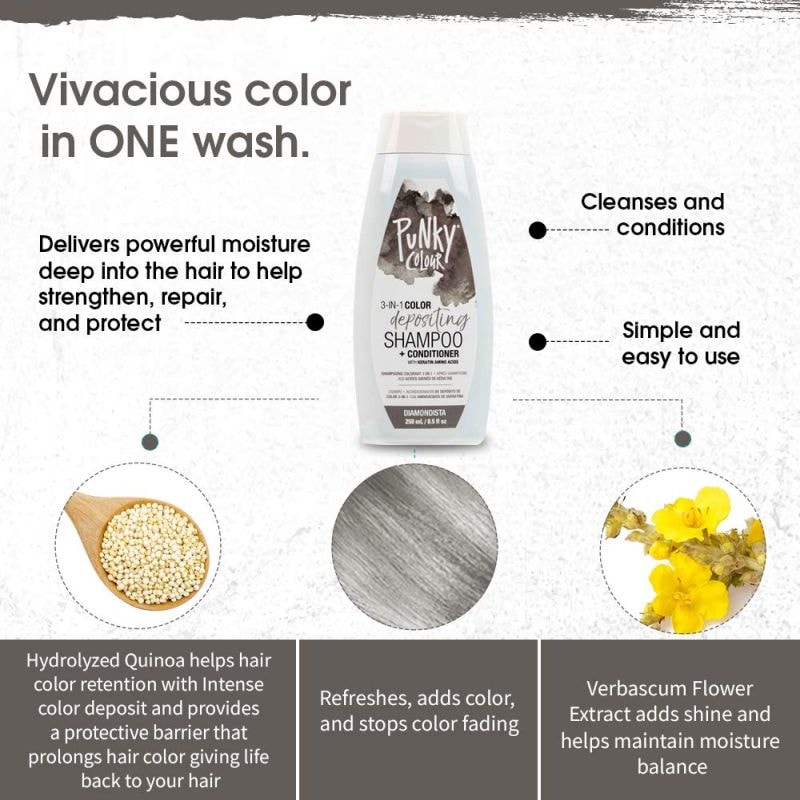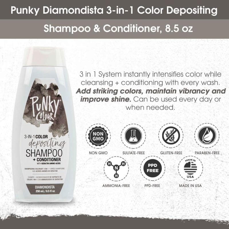 Punky Colour 3-in-1 Color Depositing Shampoo + Conditioner, Diamondista, 250ml