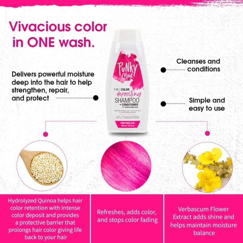 Punky Colour 3-in-1 Color Depositing Shampoo + Conditioner, Pinktabulous, 250ml